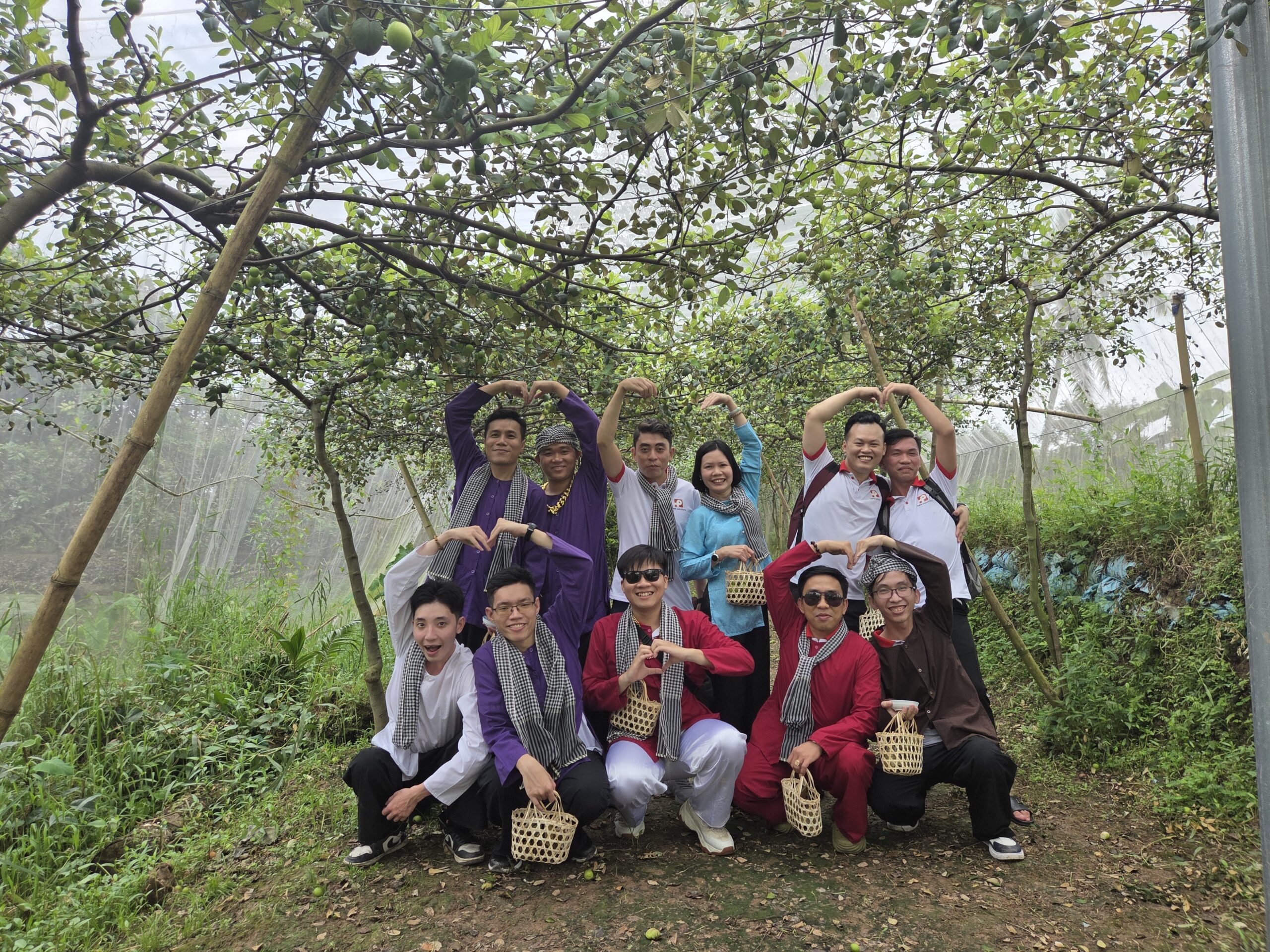 Sau bữa trưa, đoàn nghỉ ngơi và tiếp tục di chuyển đến vườn trái cây gần đó. Đoàn đi dạo dưới tán cây, tự tay hái và thưởng thức các loại trái cây theo mùa. Không có tiếng cười ồn ào của trò chơi, chỉ là cảm giác thư thái, bình yên và sự kết nối giữa các thành viên.