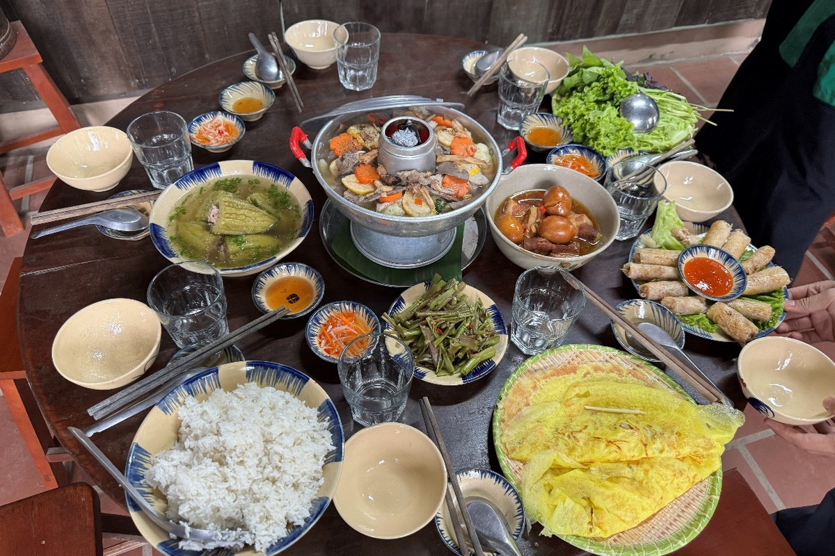 Trước giờ dùng bữa, đoàn có cơ hội tự tay chuẩn bị các món ăn cùng chủ nhà – cũng là một trải nghiệm đặc biệt đối với nhiều thành viên.