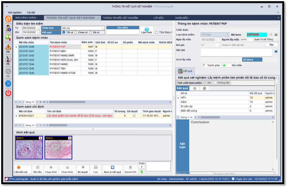 1. Quản lý Kết quả xét nghiệm Giải phẫu bệnh