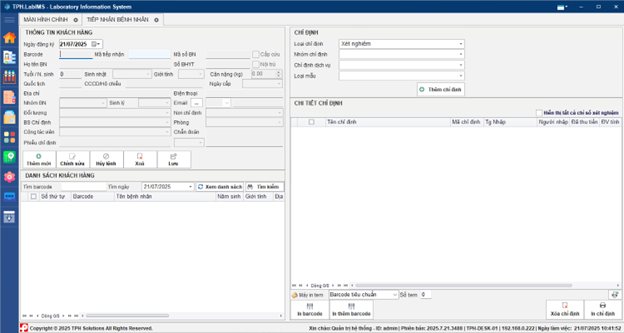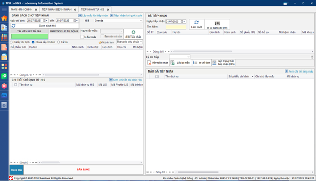 - Tiếp nhận chỉ định và Quản lý mẫu bằng barcode (mã vạch)