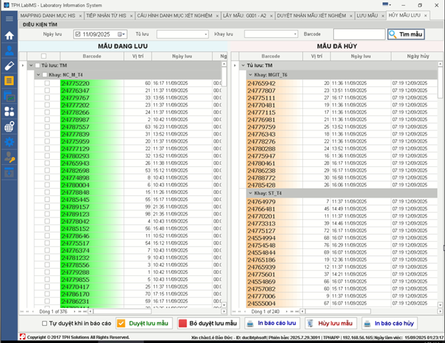 Nhờ đó, Phòng xét nghiệm có thể kiểm soát đầy đủ thông tin trạng thái mẫu.
