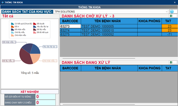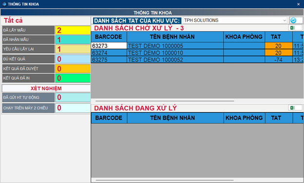 - Giúp người dùng theo dõi được trạng thái của bệnh phẩm sau khi đã có kết quả và quản lý được theo TAT