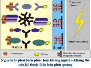- ECLIA (Electrochemiluminesence Immunoassay): miễn dịch điện hóa phát quang, dùng trong máy Cobas (Roche); CMIA (Chemiluminescent Microparticle Immunoassay – Miễn dịch hóa phát quang) – Abbott; CLIA (Chemiluminescence Immunoassay – Miễn dịch hóa phát quang) – Siemens,…